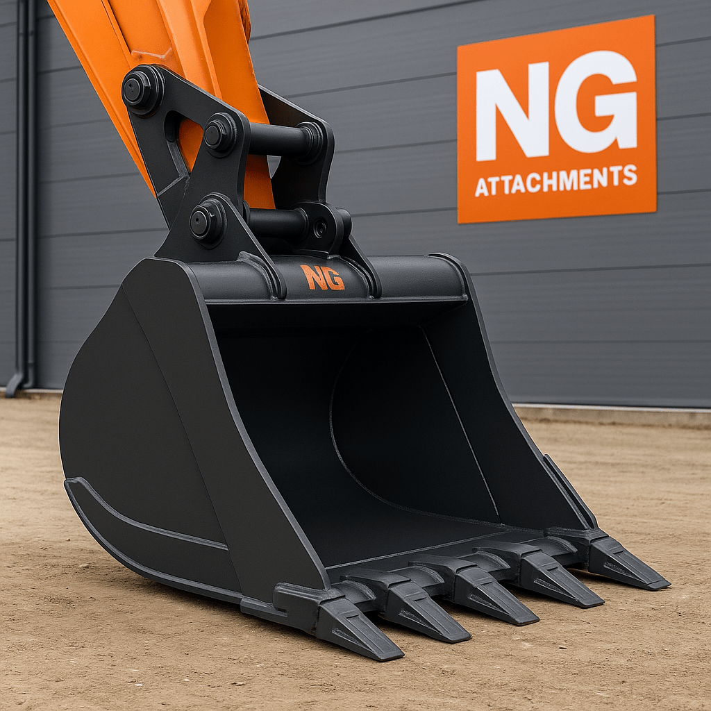Los cucharones multiuso NG Attachments están diseñados para responder a una amplia gama de necesidades en el sector de la construcción, minería y movimiento de tierras. Fabricados en acero antidesgaste, son compatibles con excavadoras de 1 a 45 toneladas y pueden personalizarse en tamaño, tipo de diente, perfil lateral o geometría interna según la aplicación específica del cliente. Desde trabajos en suelos blandos hasta operaciones en roca dura o materiales abrasivos, estos cucharones garantizan durabilidad, eficiencia de carga y fácil mantenimiento. Disponibles en versiones estándar, reforzada, para roca, con malla o con descarga lateral.Ventajas de los Cucharones NG Attachments